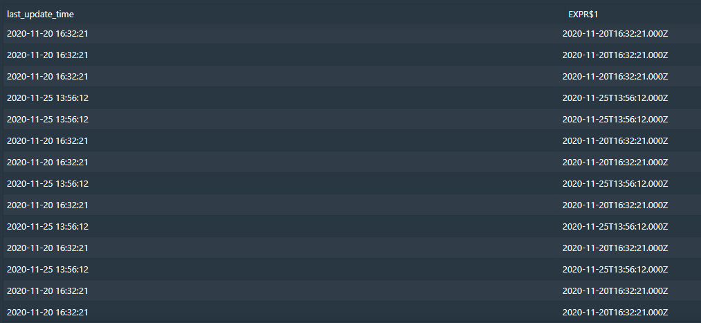 드루이드 sql 창에서 cast(last_update_time as timestamp)로 해보면