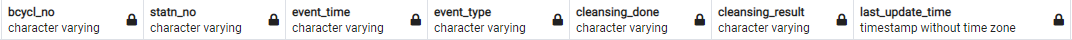 # repair_out- 자전거번호, 정류소번호, 빼간 시간, repair_out, cleansing_done, cleansing_result, last_update_time